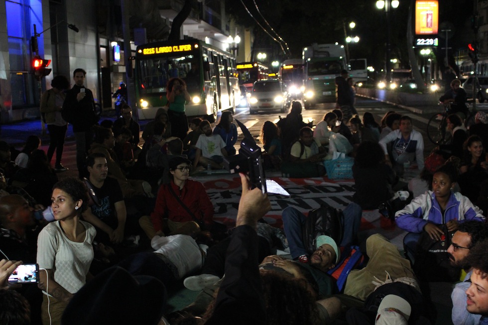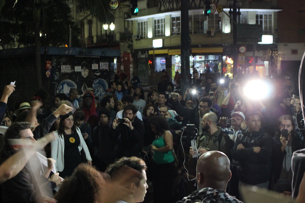 Do lado de fora, outras centenas de pessoas em vigília aguardavam – não só trabalhadores e trabalhadoras da cultura, mas também outros apoiadores como estudantes da Uneafro. Após a saída, todos seguiram em caminhada pela avenida São João até a esquina com a Ipiranga, onde sentaram-se no asfalto e lembraram as lutas do povo negro e dos indígenas, das periferias, de mulheres, gays, lésbicas e transexuais, de vítimas da violência do Estado – mais uma vez, ressaltando o aspecto político-transformador desse movimento.