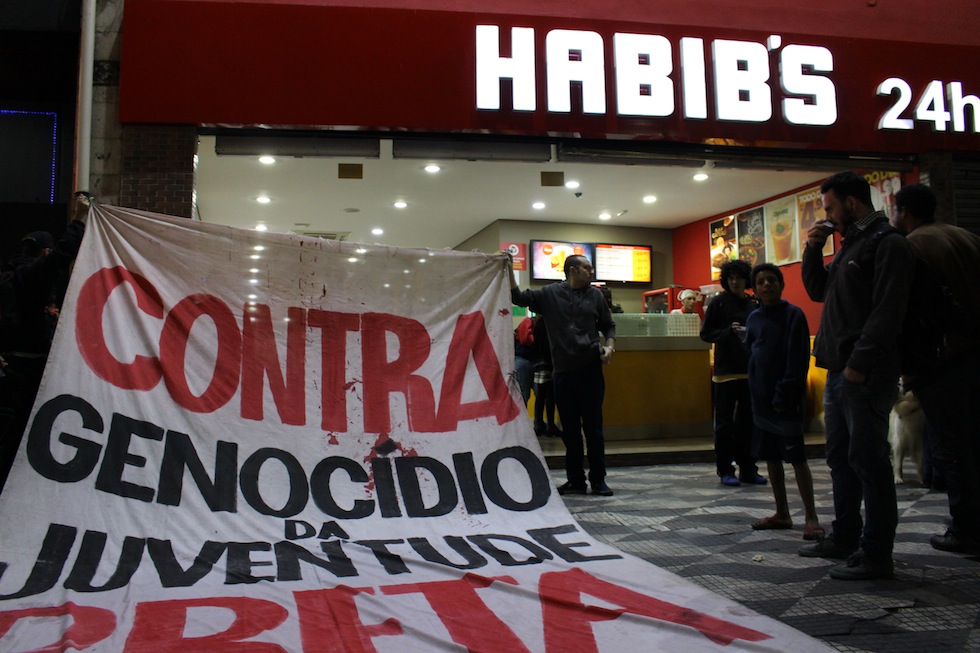 Na sequência, pararam em frente a uma lanchonete do Habib’s e relembraram o caso do menino João Victor, assassinado por funcionários da rede de fast food. “Sua esfiha tem carne de preto”, entoaram, lembrando que o racismo que mata é estruturante no sistema.