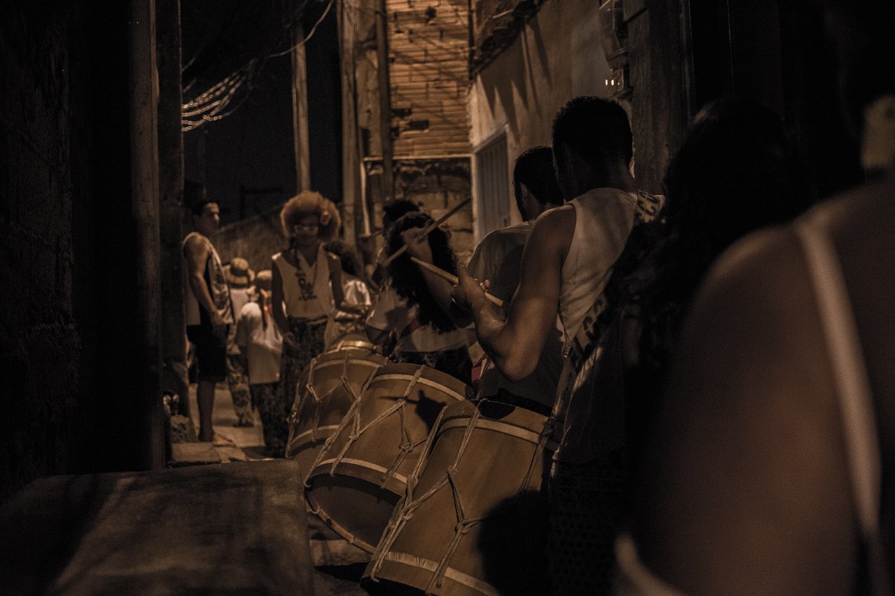 A batucada do maracatu dá o tom naquele 8 de março de 2015. Nas janelas e portões os curiosos espiam as mulheres que falam ao megafone sobre feminicídio, violência doméstica, abuso sexual e assédio.