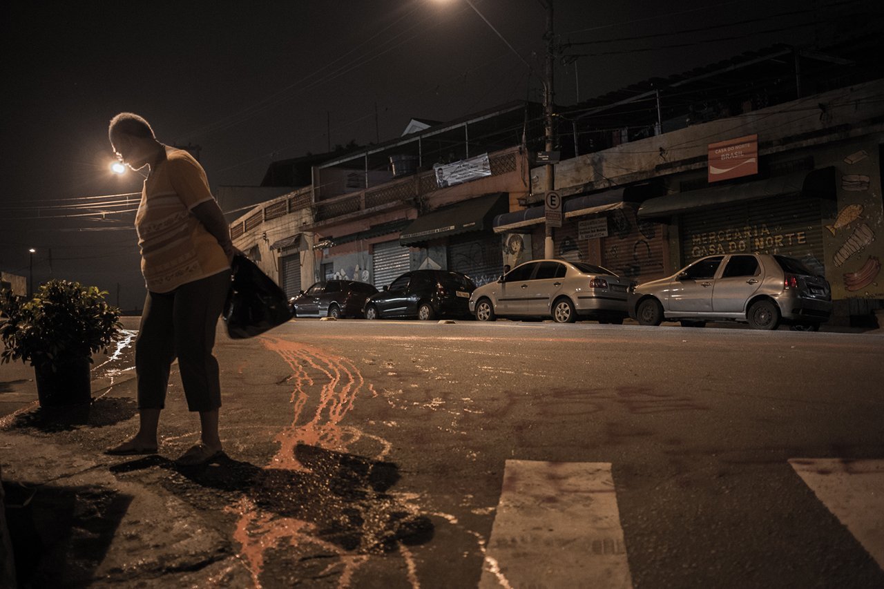 Um balde com tinta vermelha vai deixando o rastro por onde o cortejo passa. O ato inédito nas ruas, becos e vielas do Jardim Ibirapuera, zona sul de São Paulo arrasta uma centena de mulheres cis e trans de várias gerações e orientações sexuais.